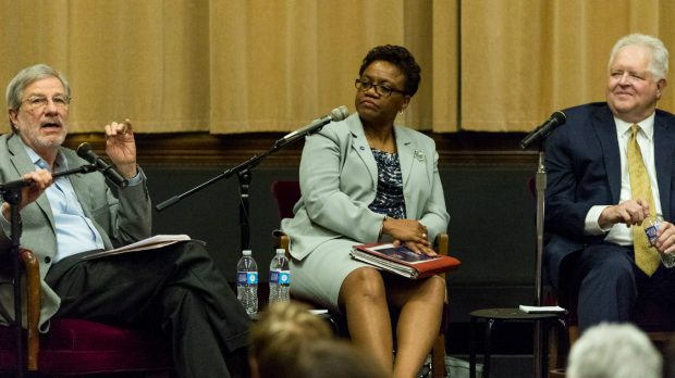 The nonprofit and nonpartisan organization, American Public Square, hosted the event. It develops programs that feature expert panelists with different views participating in civil discussions about controversial topics.